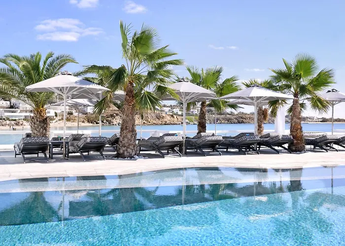 Il meraviglioso hotel a 4 stelle si trova a circa 5 minuti a piedi da Mar Egeo a Platys Gialos. L'hotel è situato a 3 km da una spiaggia piccola. Il Petinos Beach Platys Gialos è a circa 10 minuti in auto dal Museo Marittimo dell'Egeo. La fermata dell'autobus più vicina è Platys Gialos, a 550 metri. L'aeroporto di Mykonos, che è quello più vicino, è a 5 km da questo alloggio.